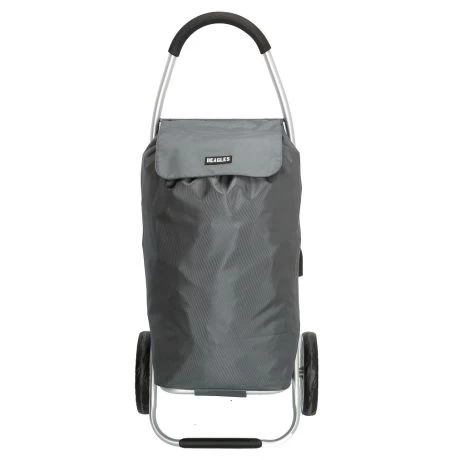Boodschappen trolley van Beagles. Zeer praktische trolley met ruim vak (61 x 32 cm) van boven afsluitbaar met trekkoord en klep. Achterop zit een ruim ritsvak waar je gemakkelijk je dagelijkse spulletjes kunt opbergen maar toch snel bij de hand hebt. Praktisch in gebruik met ruime handgreep en 2 soepele wielen. De tas is te verwijderen van het onderstel waardoor je deze weer praktisch kunt opbergen in huis.