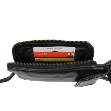 Mobile Bag uit de Elske serie van Bear Design. Bear Design tassen en accessoires worden met de hand gemaakt van plantaardig gelooid rundleder. Door het gebruik van stevig leer krijgen ze een doorleefde uitstraling en karakteristieke look. De Elske serie is gemaakt van zacht en soepel leer met fijne wax behandeling. De mobile bag heeft een steekvak met drukknoop sluiting geschikt voor je mobiele telefoon. Het voorvak is vervangend voor je portemonnee, met 4 kaarthouders een intern ritsvak en voldoende ruimte voor briefgeld en/of bonnetjes. Comfortabel in gebruik met smalle, verstelbare schouderriem.