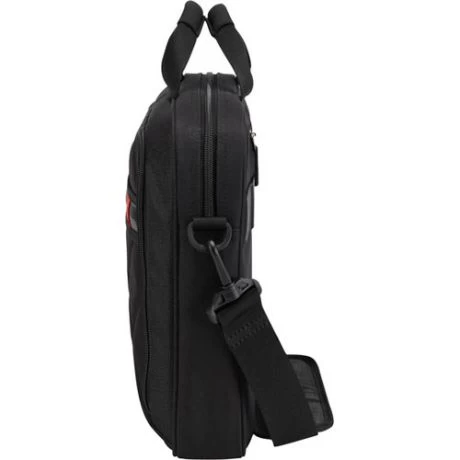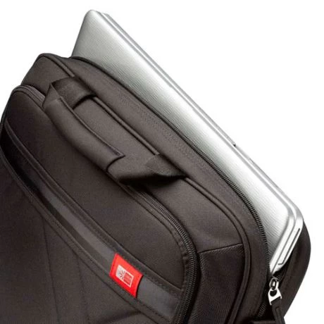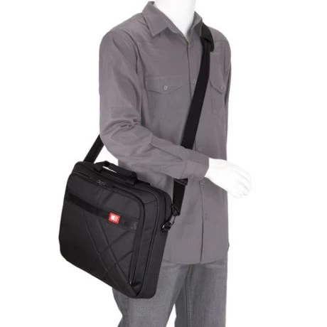 Laptoptas uit de DLC serie van Case Logic. U kunt uw 17.3″ laptop kwijt in deze veilige en stevige schoudertas. De tas bevat extra stevige dikke ritsen, zodat u de tas met gemak kunt afsluiten. Een ruim voorvak biedt ruimte voor stroomkabels en andere zakelijke of persoonlijke benodigdheden. Het voorvak is voorzien van een opbergpaneel waarin uw mobiele telefoon en zakelijke benodigdheden passen, maar ook nog genoeg ruimte biedt voor stroomkabels. De tas heeft tevens een in lengte verstelbare en afneembare schouderband om de tas op verschillende manieren te kunnen dragen. De bevestigingsband op het achterpaneel glijdt gemakkelijk over het handvat van een trolley.