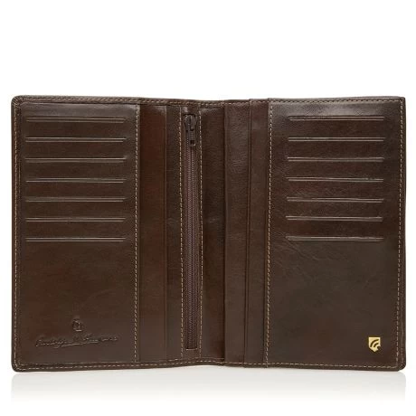 Portefeuille uit de Gaucho serie van Castelijn & Beerens. Extra ruime portefeuille voor papiergeld, rijbewijs en andere autopapieren. Met maar liefst 15 creditcardvakjes en apart, ruim insteekvak. De leren portemonnee is voorzien van een high-tech folie, dat het uitlezen van de persoonlijke gegevens via de RFID-chip op uw pasjes volledig blokkeert. Uit de Gaucho-serie, gemaakt van stierenleer behandeld met een transparante verfstof. Het sierlijke C&B-logo op een leren ovaaltje maakt deze portefeuille helemaal af.