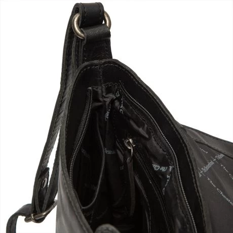 Schoudertas uit de Manta serie van Chesterfield. De Manta serie van Chesterfield is volledig gemaakt van 100% Pull Up Cow leer en heeft een unieke uitstraling. Compact formaat schoudertas met voldoende ruimte voor je dagelijkse spullen, geschikt voor A4 materiaal en voorzien van intern extra rits- en steekvakje. De tas sluit middels een flap met magnetische drukknoop. Prettig in gebruik met smalle, verstelbare schouderriem.