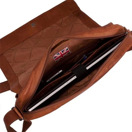 Grote maat schoudertas uit de Richard serie van Chesterfield. De Richard serie van Chesterfield is volledig gemaakt van 100% Pull Up Cow leer en behandeld met een waxlaag voor een glanzende uitstraling. De tas heeft een ruim hoofdcompartiment geschikt voor al uw A4 documenten, een gevoerd 15″ laptopvak en sluit middels rits met daarover een klep sluiting.