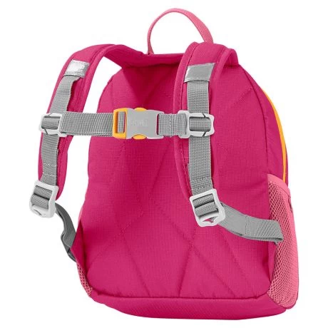 Kinderrugzak uit de Buttercup serie van Jack Wolfskin. Naar de crèche, naar de speelplaats wandelen of het weekend naar opa en oma – de Buttercup, onze kleinste rugzak voor kinderen, is licht en behoorlijk robuust. Om ervoor te zorgen dat de mini-outdoorfans hun uitrusting zelfstandig kunnen bedienen, gaat de ritssluiting van het hoofdvak heel licht. Broodtrommel, flesje met drinken en spelletjes kunnen de kleintjes zelf erin opbergen. En ze kunnen ook alles heel gemakkelijk zelf dragen, want de Buttercup is voorzien van Snuggle Up, het draagsysteem voor kinderen vanaf twee jaar: Het is uiterst flexibel, zeer goed gevoerd en zit daardoor comfortabel en stevig op de rug.