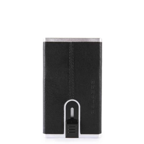 Luxe compacte portemonnee uit de Black Square serie van Piquadro. De collectie Black Square is gemaakt van full-grain Toscaans kalfsleer dat bewerkt is met plantaardige verf. De ongelijke look is het resultaat van een origineel proces, dat de warmte en de eigenschap van echt, onbewerkt leer behoudt. Na het looien plaatsen de deskundige handen de huiden in grote vaten gevuld met water zonder chemische stoffen toe te voegen. Het leer wordt dan gedroogd in trommels en vervolgens uitgelegd zodat vezels ontspannen. Dankzij dit proces, is elk stuk van de Black Square-collectie uniek. De kaarthouder met uitschuif systeem in deze portemonnee heeft ruimte voor 5 pasjes en biedt bescherming tegen skimmen.