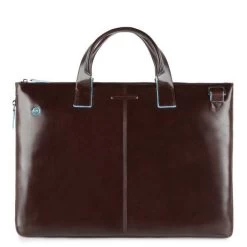 Leren laptoptas uit de Blue Square serie van Piquadro. De collectie Blue Square is gemaakt van gelooid kalfsleer. Deze traditionele looimethode behoudt de schoonheid van het leer door de jaren heen. De ruwe snijranden die met de hand beschilderd zijn, tonen het businesskarakter van de collectie en zijn een zeer herkenbaar onderscheidend element. Deze 15.6” laptoptas bevat een slank hoofdcompartimenten met ruimte voor een 15.6″ laptop en een 9.7″ iPad/Tablet. Het hoofdvak bevat verder een georganiseerd intern interieur. De tas heeft een verstelbare, afneembare schouderband. De tas is 2,5 centimeter uitbreidbaar met een rits, je kunt de tas openritsen voor meer volume (dikte) voor het opbergen van je laptop en hoeveelheid documenten.