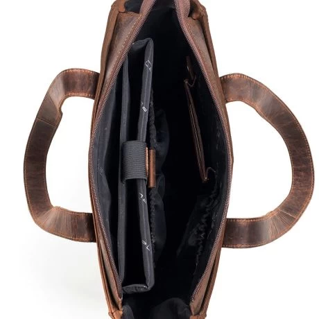 Leren shopper uit de Jackson serie van Plevier. De Jackson serie is gemaakt van plantaardig gelooide volnerf leer, heeft een ruime indeling geschikt voor A4 materiaal met gewatteerd, uitneembaar 15.6″ laptopvak en is afsluitbaar met rits. De tas heeft Plevier® multifunctional pockets voor o.a.muis, bekabeling, visitekaartjes, mobiele telefoon, visitekaartjes, usb stick en pennen. Praktisch in gebruik met ruime handvatten en verstelbare (afneembare) schouderriem.