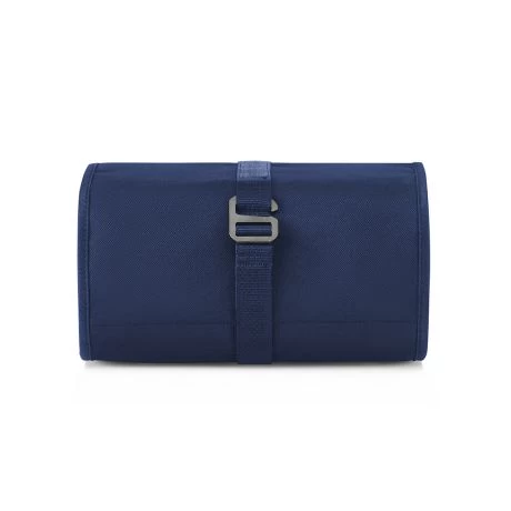 Toilettas uit de Wrapcosmetic serie van Reisenthel. Dit model rol je op tot een compacte toilettas voor onderweg. Ter plaatse rol je de toilettas uit, er is altijd wel een handig plekje om de toilettas op te kunnen hangen. Een haakje, deurknop, spijker in de muur of aan de doucherail. Uitgevouwen zijn alle toiletspullen georganiseerd en gemakkelijk te vinden. De toilettas is gemaakt van gerecycled polyester, is waterafstotend en gemakkelijk schoon te maken.