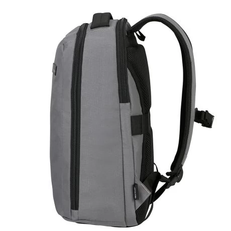 De rugtas is voorzien van ergonomische schouderbanden en een in hoogte verstelbare borstriem aan de voorzijde. Het interieur is van gerecycled PET en is ruim in inhoud. Het laptopvak en tabletvak is apart te bereiken met een ritsvak. Aan de achterzijde zit een smart sleeve zodat je de rugzak over een trekstang van een koffer kunt zetten tijdens reizen.