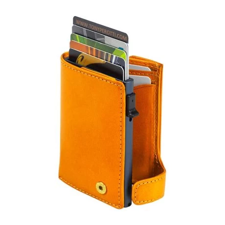 Kaarthouder uit de Furbo Collectie van Tony Perotti. Deze pasjeshouder heeft een klassieke uitstraling en is superhandig in gebruik. De portemonnee is gemaakt van natuurlijk gelooid Italiaans rundleder en voorzien van een aluminium gegoten container met pop up systeem voor 4-6 pasjes of creditcards. Daarnaast heeft de kaarthouder nog ruimte voor papiergeld, bonnetjes, extra creditcards en een muntgeld vak aan de buitenzijde. De Furbo kaarthouder beschermt je kaarten tegen beschadigingen, vuil en elektronische RFID diefstalbeveiliging van je kaartgegevens. De kwaliteit van deze pasjeshouder staat garant voor lang gebruiksplezier.