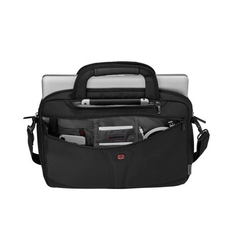 Laptoptas uit de BC serie van Wenger. De klassieke serie is eenvoudig, elegant en perfect gevormd. Ideaal voor zakenmensen die hun belangrijke accessoires veilig willen opbergen en snel bij de hand willen hebben. De BC Up biedt betrouwbare bescherming voor uw elektronische apparaten en optimale organisatie voor belangrijke accessoires. Dankzij de trolleyband, de afneembare schouderriem en de draaggreep beschikt u over flexibele, handige transportmogelijkheden. De robuuste ballistische stof en met kable verstevigde draaggrepen zorgen voor een hoge betrouwbaarheid op uw reizen.