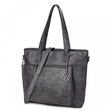 Schoudertas uit de Evelina serie van Wimona. De tas is zeer ruim ingedeeld, bevat ruimte voor A4 documenten en heeft een organisatiepaneel voor een smartphone, portemonnee en pennen. De tas is van binnen praktisch ingedeeld, heeft een vak ter afscheiding met ritssluiting en een apart laptop/ tabletvak. De schoudertas bevat naast ruime handvatten ook een afneembare schouderriem, waardoor de tas ook over de schouder draagbaar is.