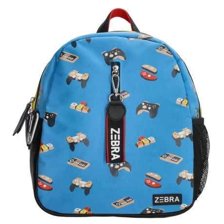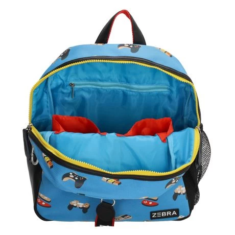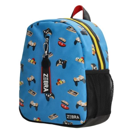 Stoere kinderrugtas van Zebra. De rugzak heeft een coole stijl en is te sluiten door middel van een stevige rits, bevat een handvat en verstelbare schouderbanden. Ook is de tas voorzien van een ritsvak met sleutelhanger voorop de tas en twee drinkbekervakken aan de binnenkant. Op de voorzijde zit een vak met een verticale rits, de rits is voorzien van sleutelhanger. Aan de ene zijkant een ring voor sleutels, aan de andere zijkant een netvak voor een drinkflesje. De rugtas is geschikt voor kinderen om mee te nemen naar de basisschool. De rugtas is gemaakt voor kinderen van ongeveer 4 t/m 8 jaar.